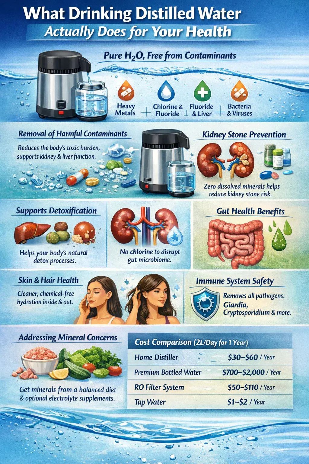 Denne artikel nedbryder de specifikke, evidensbaserede fordele, adresserer almindelige bekymringer såsom mineraltab og forklarer, hvem der har størst fordel af regelmæssigt at drikke vand produceret af en hjemmevandsdestiller.